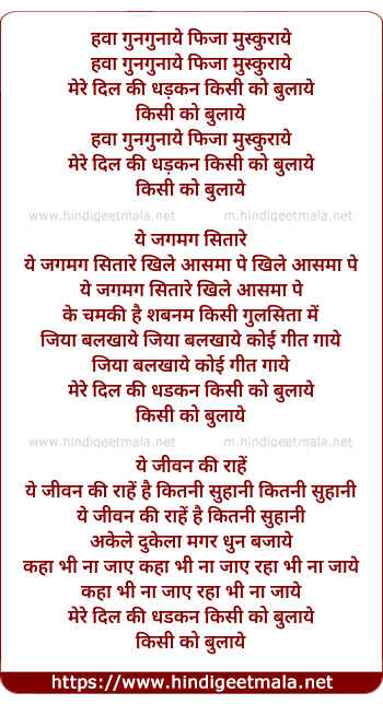 Lyrics of Hawa Gungunaye Fizaa Muskuraye - हवा गुनगुनाये फिजा मुस्कुराये