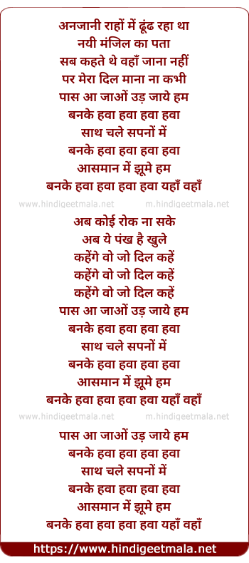 Lyrics of Hawa Hawa - अनजानी राहों में ढूंढ रहा था