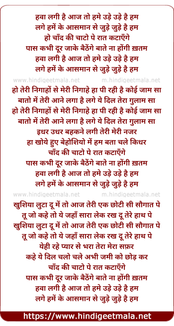 Lyrics of Hawa Lagi Hai Aaj To Hame - हवा लगी है आज तो हमे