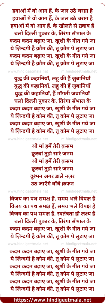 kadam kadam badhaye jaa, khushi ke geet gaye jaa