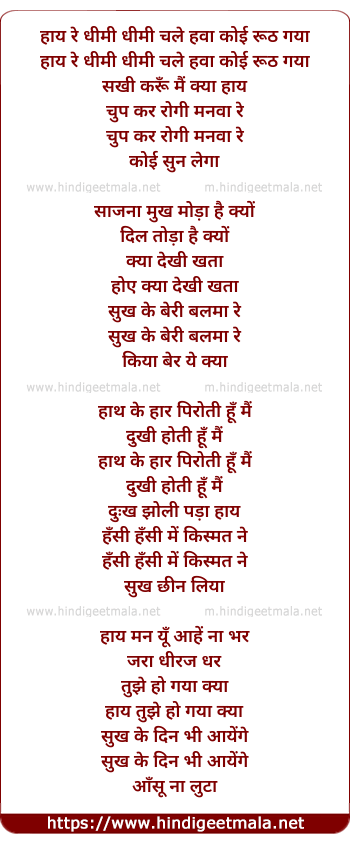 Lyrics of Haye Re Dhimi Dhimi Chal Hawa - हाय रे धीमी धीमी चले हवा कोई रूठ गया