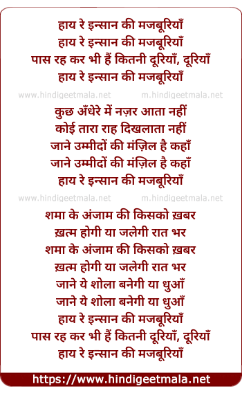 Lyrics of Haye Re Insan Kee Majburiya - हाय रे इन्सान की मजबूरियाँ