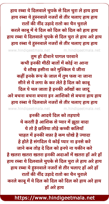 haay rabba ye dilwale chupke se dil chura le haay are haay