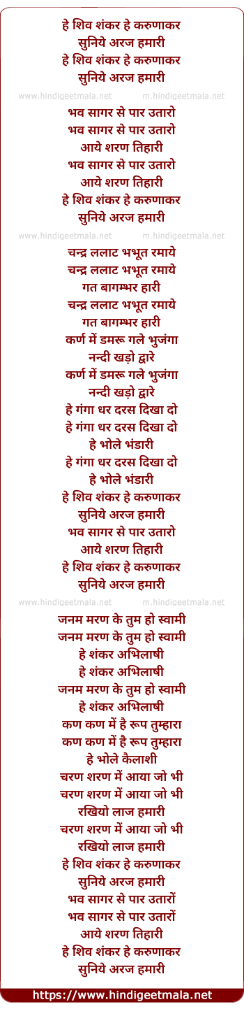 Lyrics of He Shiv Shankar He Karunakar - हे शिव शंकर हे करुणाकर