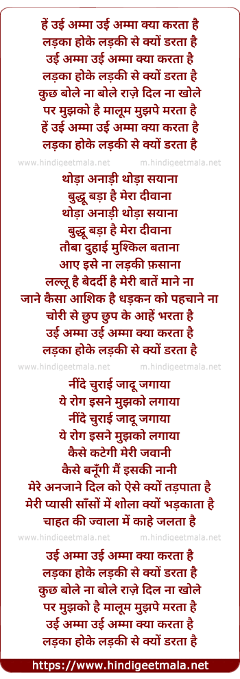 Lyrics of He Ui Amma U Amma Kya Karta Hai - हें उई अम्मा उई अम्मा क्या करता है