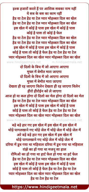 Lyrics of Head Ya Tail, Head Ya Tail - हैड या टेल, हैड या टेल