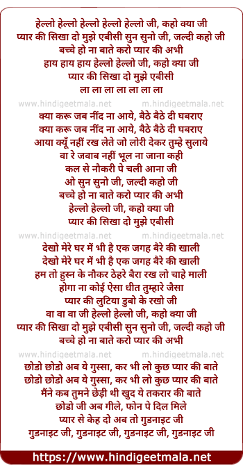 Lyrics of Hello Hello Ji, Kaho Kya Ji - हेल्लो हेल्लो जी, कहो क्या जी