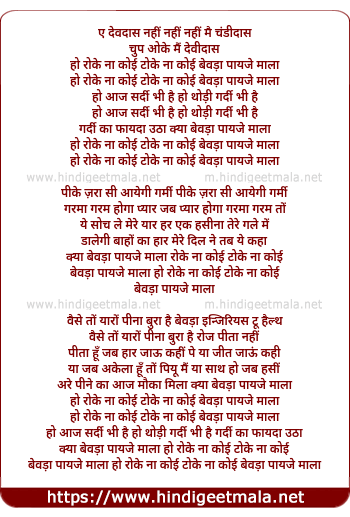 bewda payje mala ho roke na koi toke na koi bewda payje mala