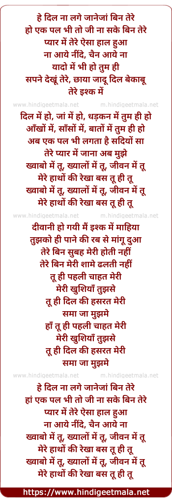 Lyrics of Hey Dil Na Lage - हे दिल ना लगे