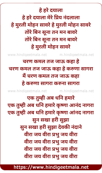 Lyrics of Hey Hare Dayala Mere Priy Nandalala - हे हरे दयाला मेरे प्रिय नंदलाला