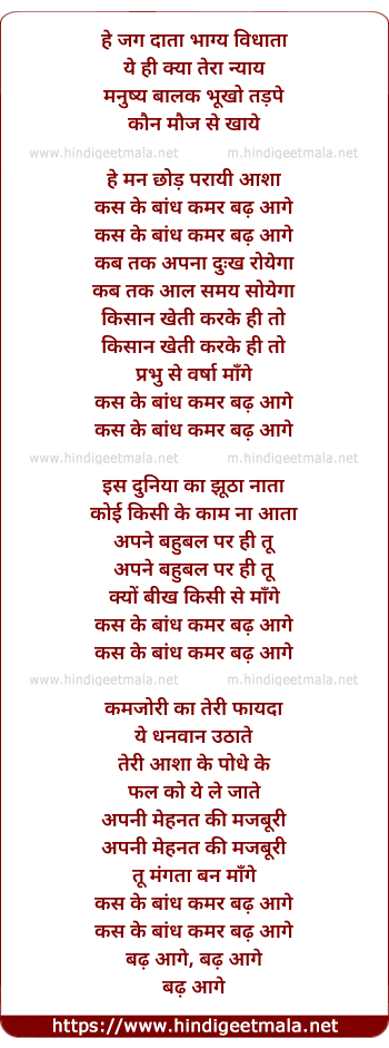 Lyrics of Hey Jag Data Bhagya Vidhata (He Man Chhod Parayi Aasha) - हे जग दाता भाग्य विधाता