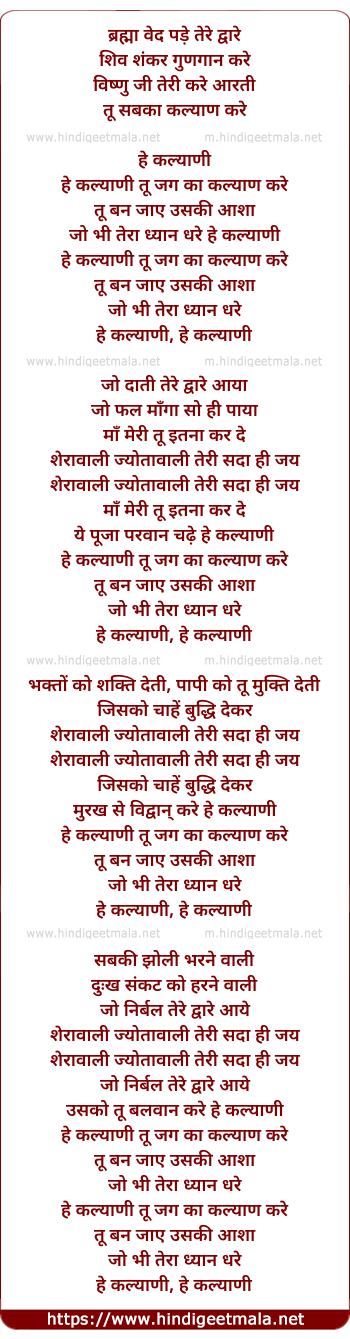 Lyrics of He Kalyani Tu Jag Ka Kalyaan Kare - हे कल्याणी तू जग का कल्याण करे