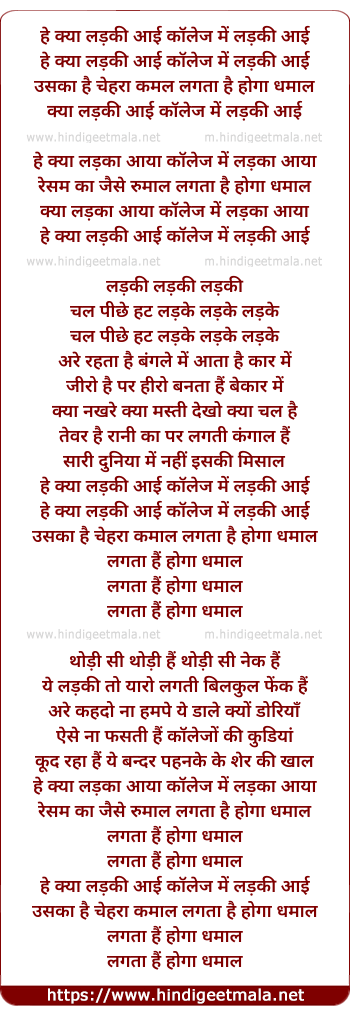 Lyrics of Hey Kya Ladki - हे क्या लड़की