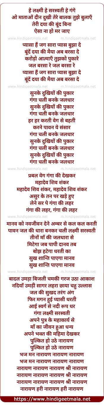 Lyrics of Hey Lakshmi Hey Saraswati Hey Gangay - हे लक्ष्मी हे सरस्वती हे गंगे