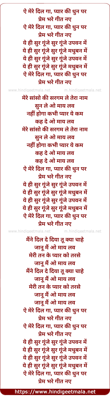 Lyrics of Hey Mere Dil Ga - ऐ मेरे दिल गा, प्यार की धुन पर