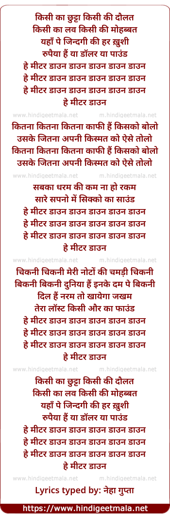 Lyrics of Hey Meter Down, Down - हे मीटर डाउन, डाउन