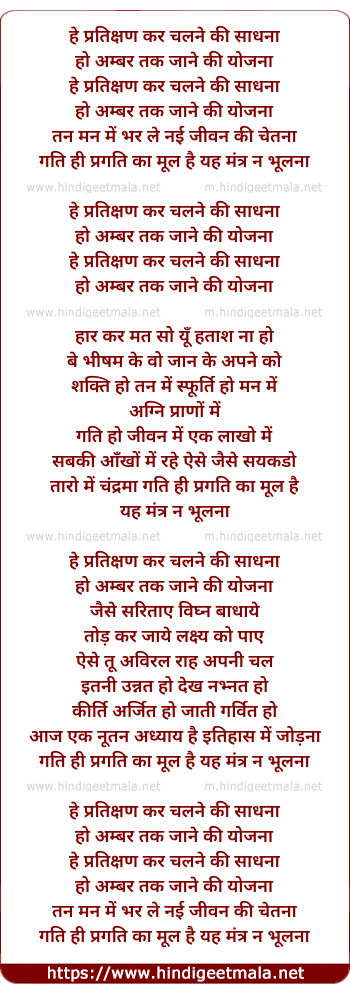 Lyrics of Hey Pratikshan Kar Chalne Ki Sadhna - हे प्रतिक्षण कर चलने की साधना
