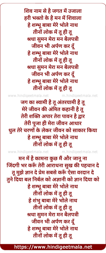 Lyrics of He Shambu Baba Mere Bhole Nath - हे शम्भू बाबा मेरे भोले नाथ