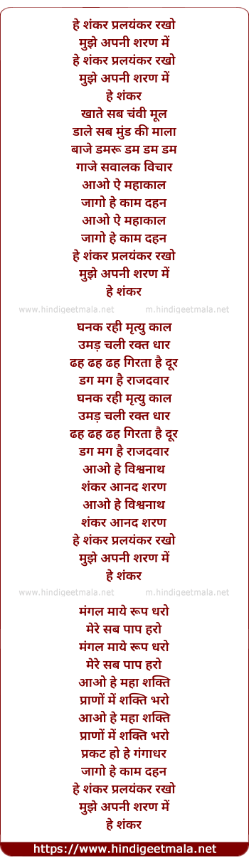 Lyrics of Hey Shankar Pralaykar - हे शंकर प्रलयकर