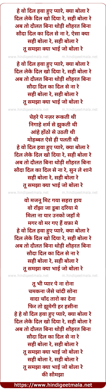 Lyrics of Hey Woh Dil Hawa Hue Pyaare - हे वो दिल हवा हुए प्यारे