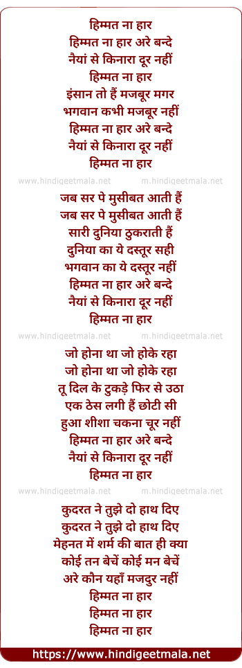 Lyrics of Himmat Na Haar Are Bande - हिम्मत ना हार अरे बन्दे