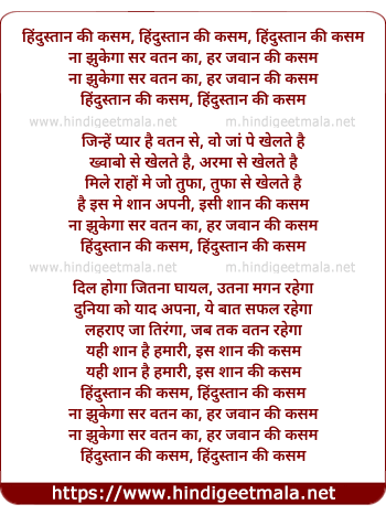 Lyrics of Hindustaan Ki Qasam, Hindstaan Ki Qasam - हिंदुस्तान की कसम, हिंदुस्तान की कसम