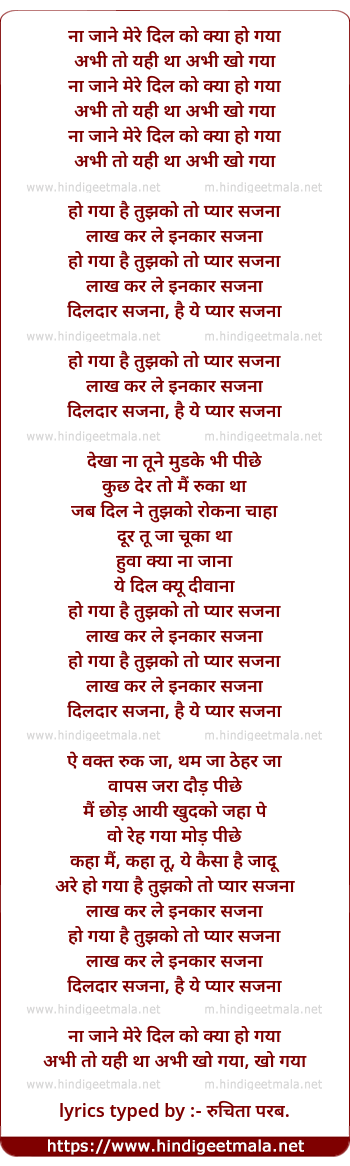 Lyrics of Ho Gaya Hai Tujhko To Pyaar Sajana - हो गया है तुझको तो प्यार सजना