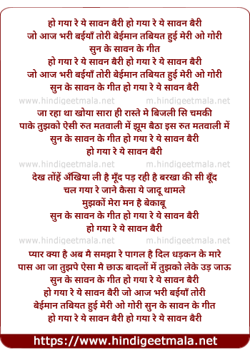 Lyrics of Ho Gaya Re Ye Sawan Bairi - हो गया रे ये सावन बैरी