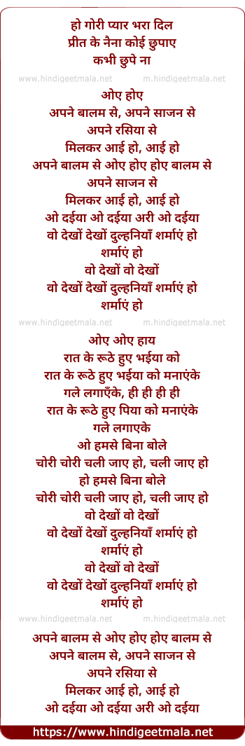 Lyrics of Ho Gori Pyar Bhara Dil - हो गोरी प्यार भरा दिल