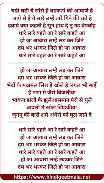 Lyrics of Ho Ja Awaraa - हो आवारा