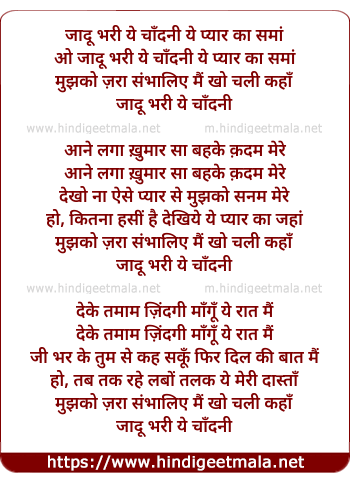 Lyrics of Ho Jadu Bharee Yeh Chandanee - हो जादू भरी ये चाँदनी