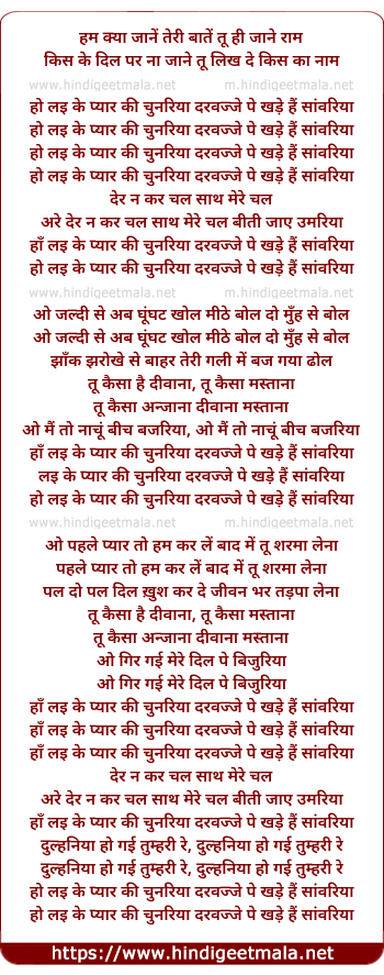 laike pyaar ki chunariya darwaje pe khade hai saawariya