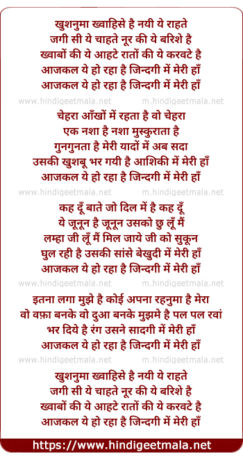 Lyrics of Aajkal Ye Ho Raha Hai Zindgi Me Meri - आजकल ये हो रहा हैं ज़िन्दगी मेरी