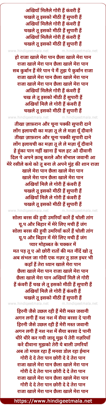chaila khale mera paan aakhiya milai le gori
