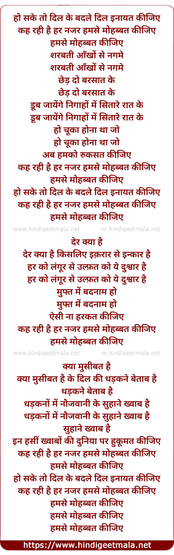 Lyrics of Ho Sake To Dil Ke Badle Dil - हो सके तो दिल के बदले दिल