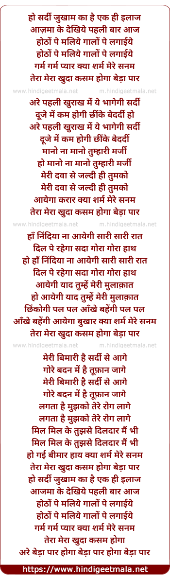 Poetic Translation - Lyrics of Ho Sardi Jukam Ka Hai Ek Hi Ilaz - हो सर्दी जुखाम का है एक ही इलाज