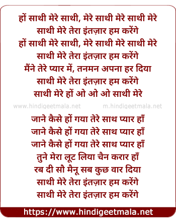 Lyrics of Ho Sathee Mere Sathee - हों साथी मेरे साथी, मेरे साथी मेरे साथी मेरे