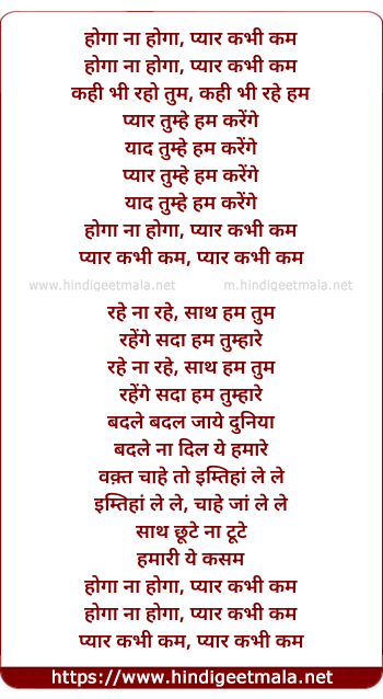 Lyrics of Hoga Na Hoga (Part 4) - होगा ना होगा, प्यार कभी कम