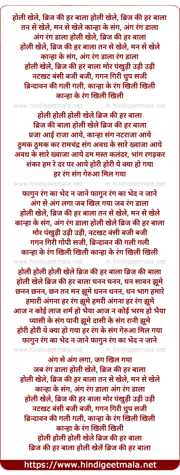 Lyrics of Holi Khele Brij Ki Har Baala - होली खेले ब्रिज की हर बाला
