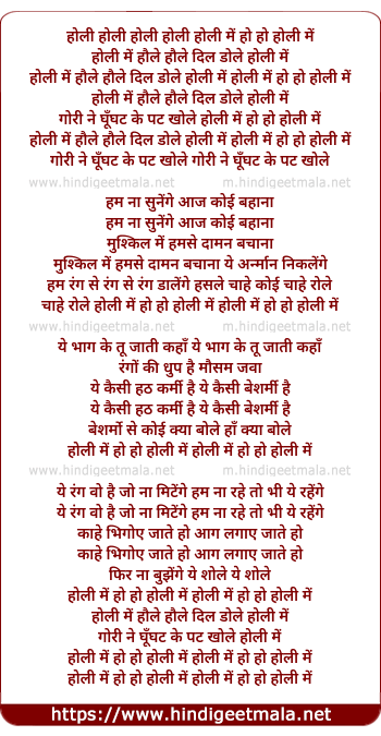 Lyrics of Holi Me Haule Haule Dil Dole - होली में हौले हौले दिल डोले