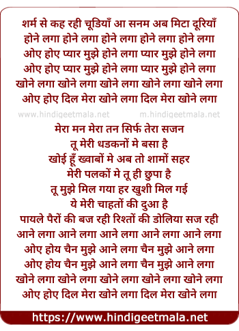 Lyrics of Hone Laga Hone Laga - होने लगा होने लगा