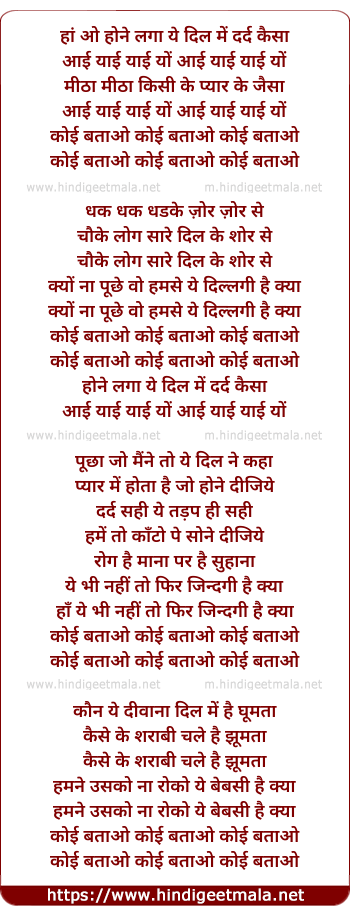 Lyrics of Hone Lagaa Ye Dil Men Dard Kaisaa - होने लगा ये दिल में दर्द कैसा