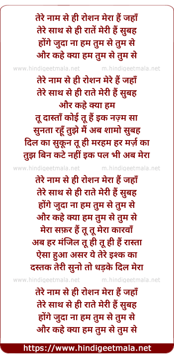 tere naam se hi roshan mera hai jahan