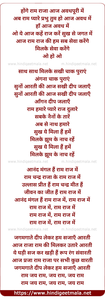 Lyrics of Honge Ram Raja Aaj - होंगे राम राजा आज