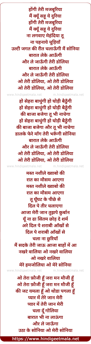 Lyrics of Hongi Teri Majburiya - होंगी तेरी मजबूरिया