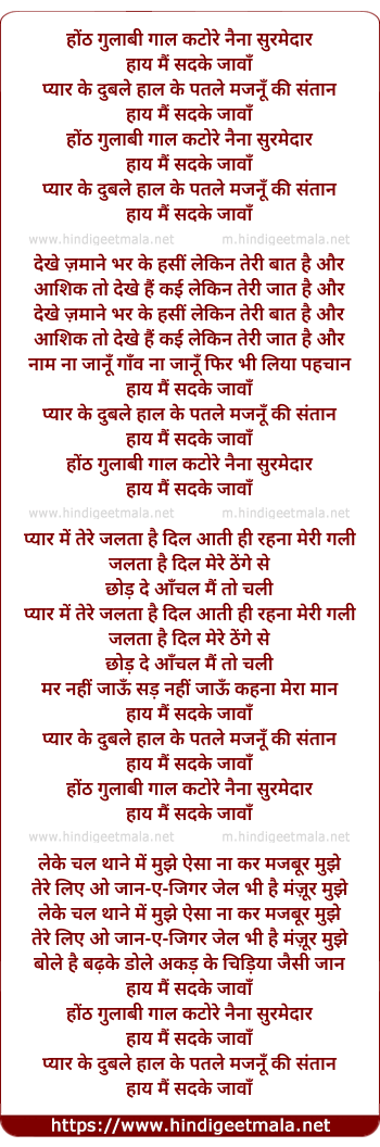 Lyrics of Honth Gulaabi Gaal Katore, Haay Main Sadake Jaavaan - होंठ गुलाबी गाल कटोरे, हाय मैं सदके जावाँ