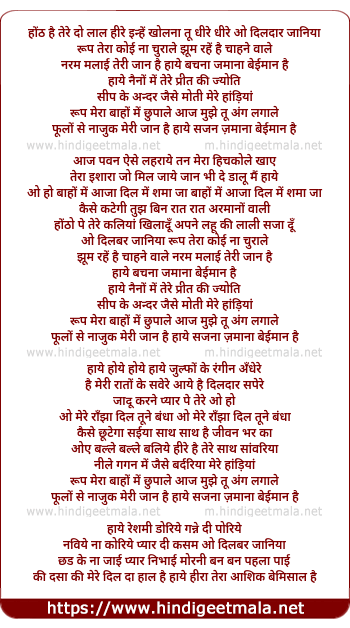 Lyrics of Hoth Hai Tere Do Lal Hire Inhe Kholna Tu Dhire Dhire - होंठ है तेरे दो लाल हीरे इन्हें खोलना तू धीरे धीरे