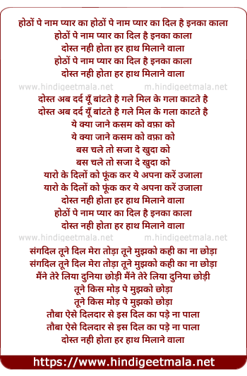 hotho pe nam pyar ka hotho pe nam pyar ka dil hai inka kala