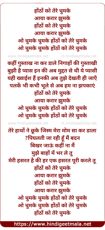 Lyrics of Honton Ko Tere Chumke - होंठों को तेरे चुमके