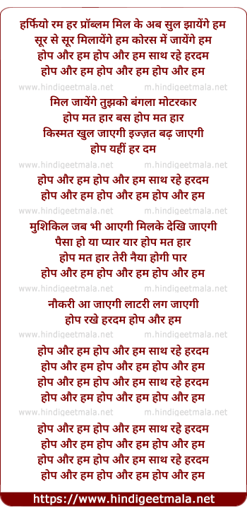 hope aur ham hope aur hum sath rahe har dum